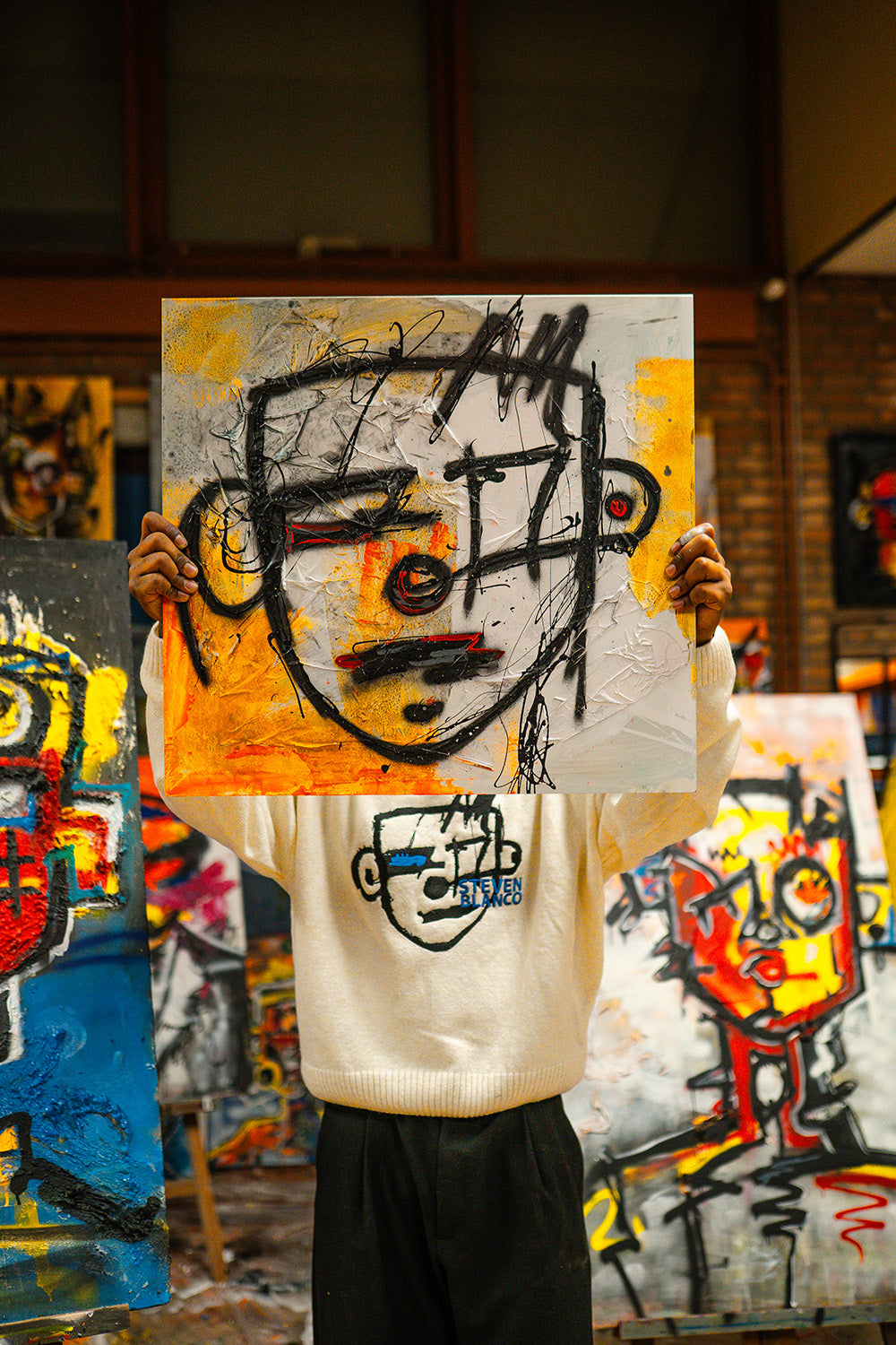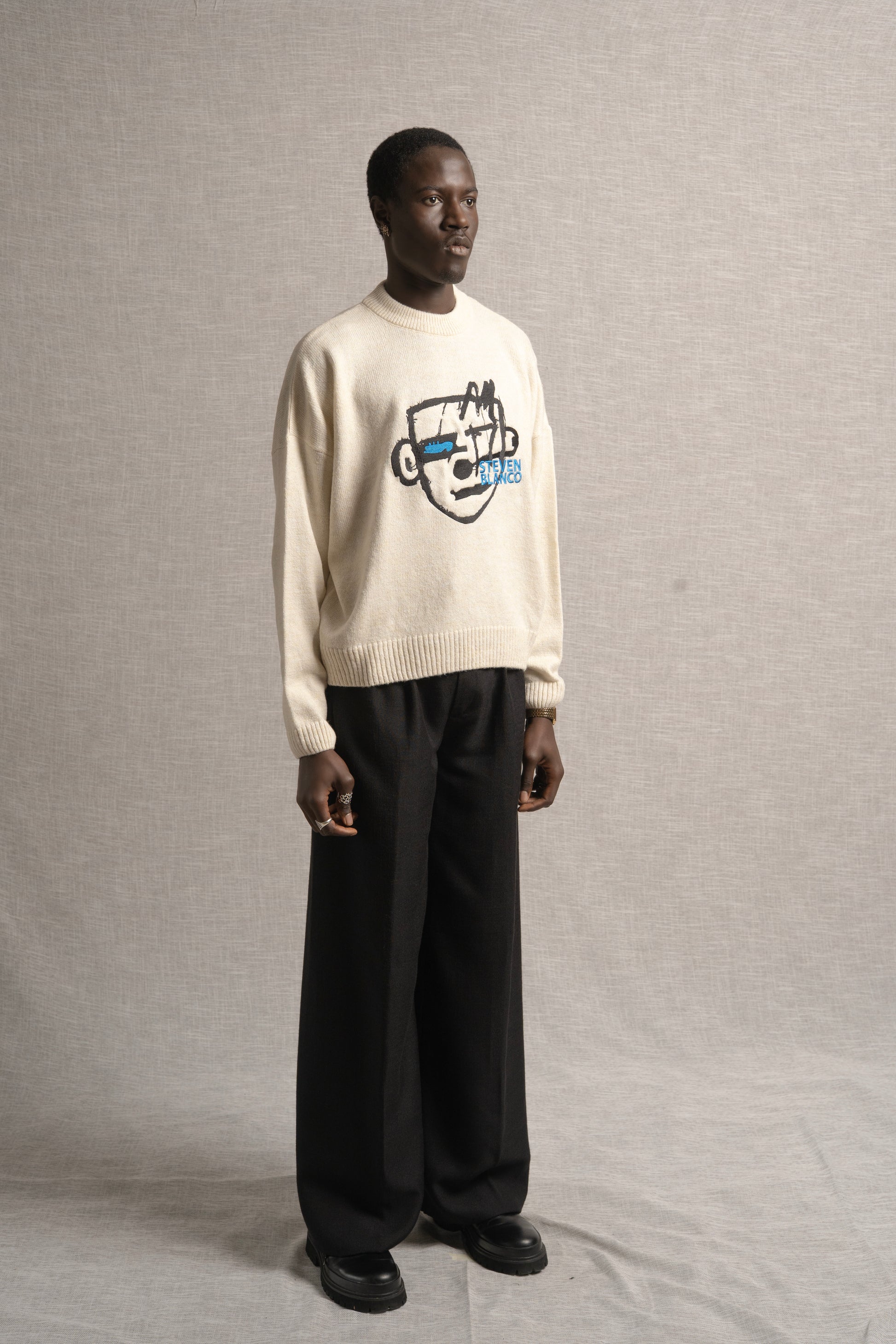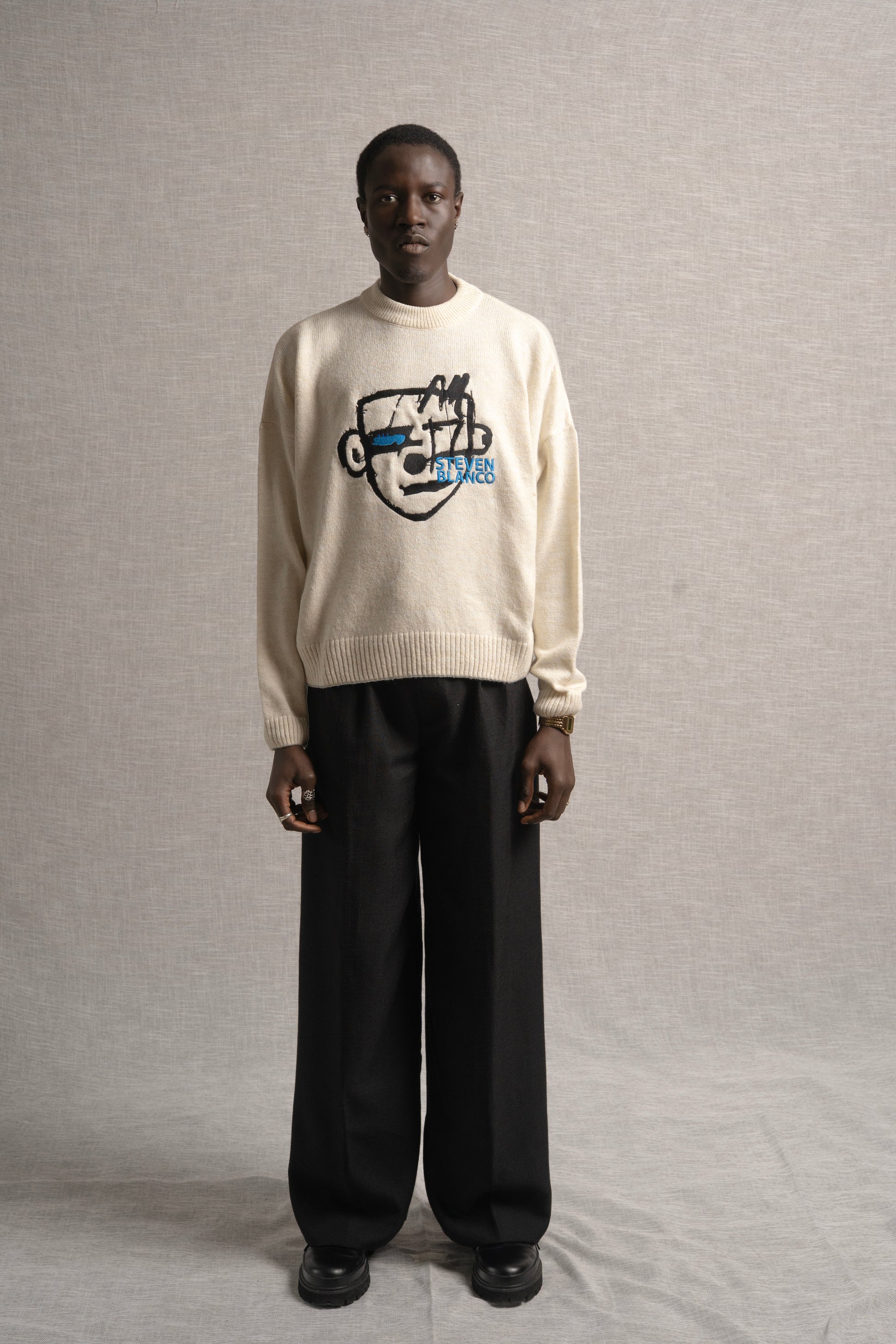 This beige unisex sweater offers a relaxed fit and showcases a Steven Blanco embroidered design on the front. Designed for effortless style and everyday comfort.